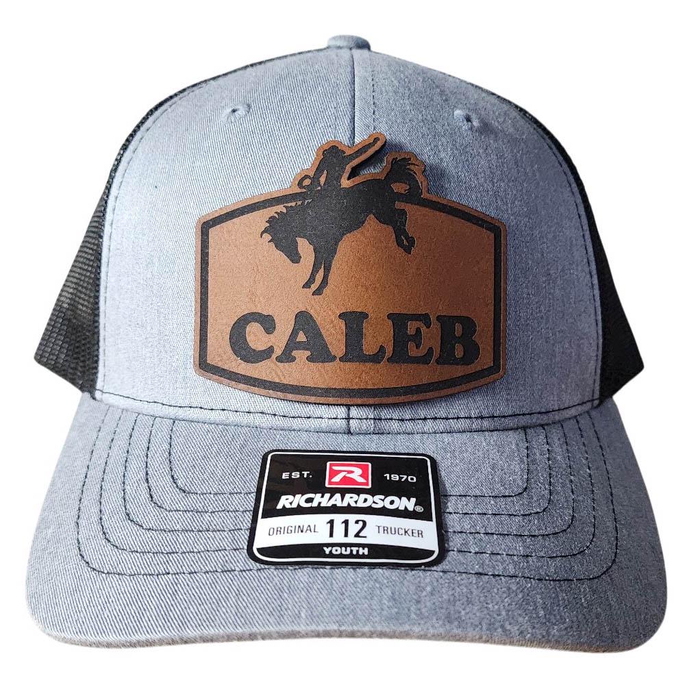 Personalized Rodeo Hat | Custom Leather Name Patch Youth or Adult Trucker Cap | Kids Gift for Him or Her, Cowgirl, Bucking Horse, Birthday