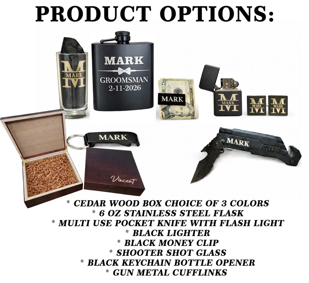 Groomsmen • Best Man • Ushers • Father of the Groom • Wedding Party Thank-You Gifts • Bachelor Party • Graduation • Birthdays